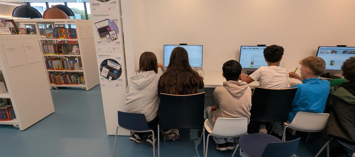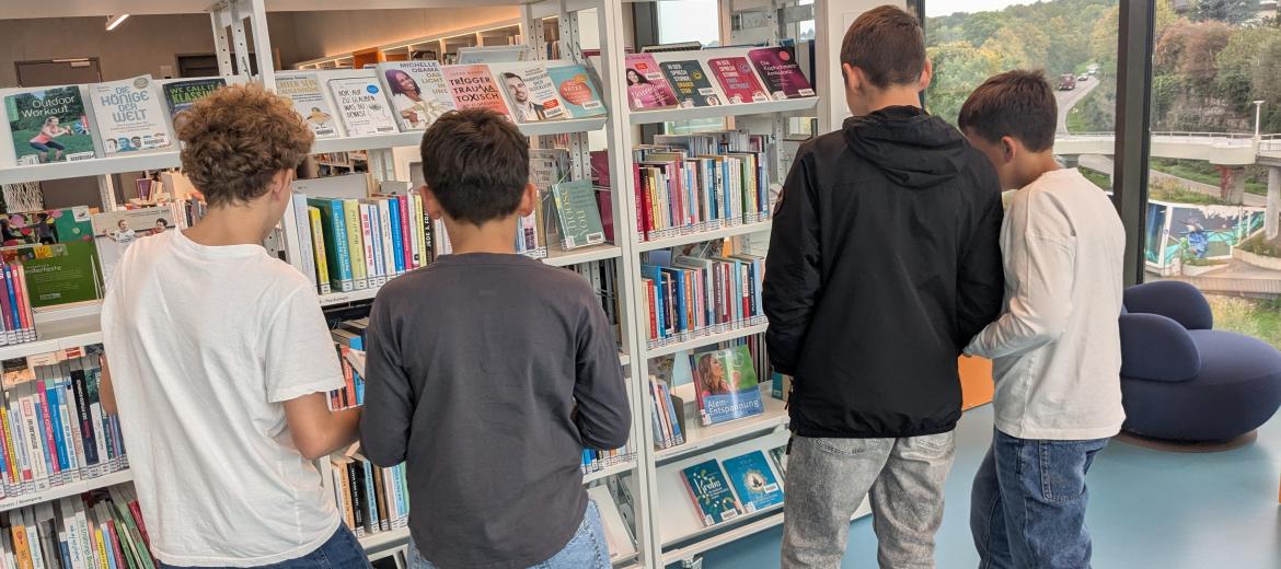 Am Mittwoch, den 15. Oktober 2025, durften wir, die Klasse 7d, zusammen mit Frau Fallböhmer einen kleinen Ausflug in die Mediathek im Kubus am Remsecker Marktplatz machen. Dort lernten wir, wie man Informationen findet, die man für die Vorbereitung der GFS benötigt. Nach einer Einführung durften wir in Gruppen zu verschiedenen Themen recherchieren. Zum Beispiel sollten wir herausfinden, ob es zum Thema „Katzenhaltung“ ein Buch oder eine Zeitschrift gibt. Dafür sind wir ins Internet auf die Website der Mediathek gegangen und haben im Bibliothekskatalog verschiedene Begriffe eingegeben. Die Bücher, die angezeigt wurden, haben wir danach in den Bücherreihen gesucht und auch gefunden. Nach dieser Übung hatten wir noch etwas Zeit, die Bücherei eigenständig zu erkunden und in verschiedene Bücher reinzulesen.