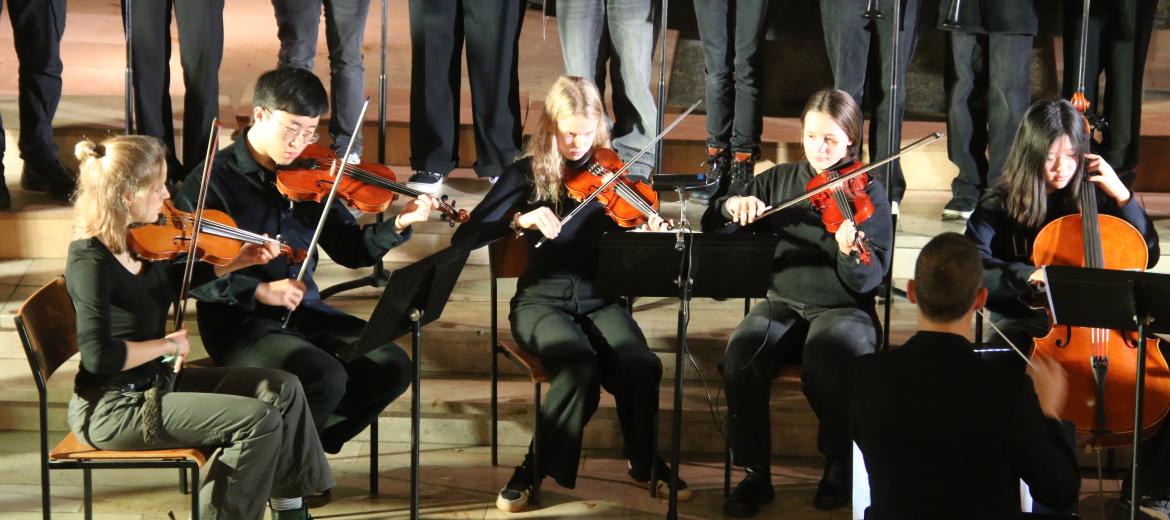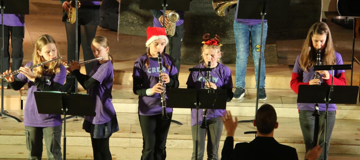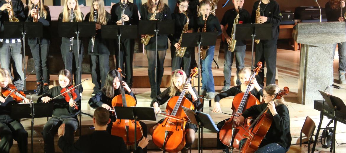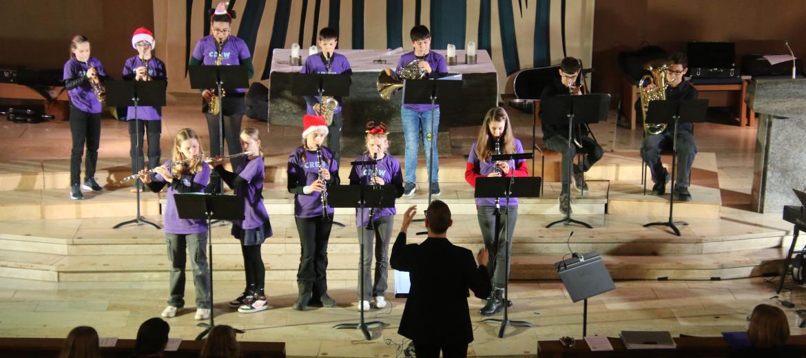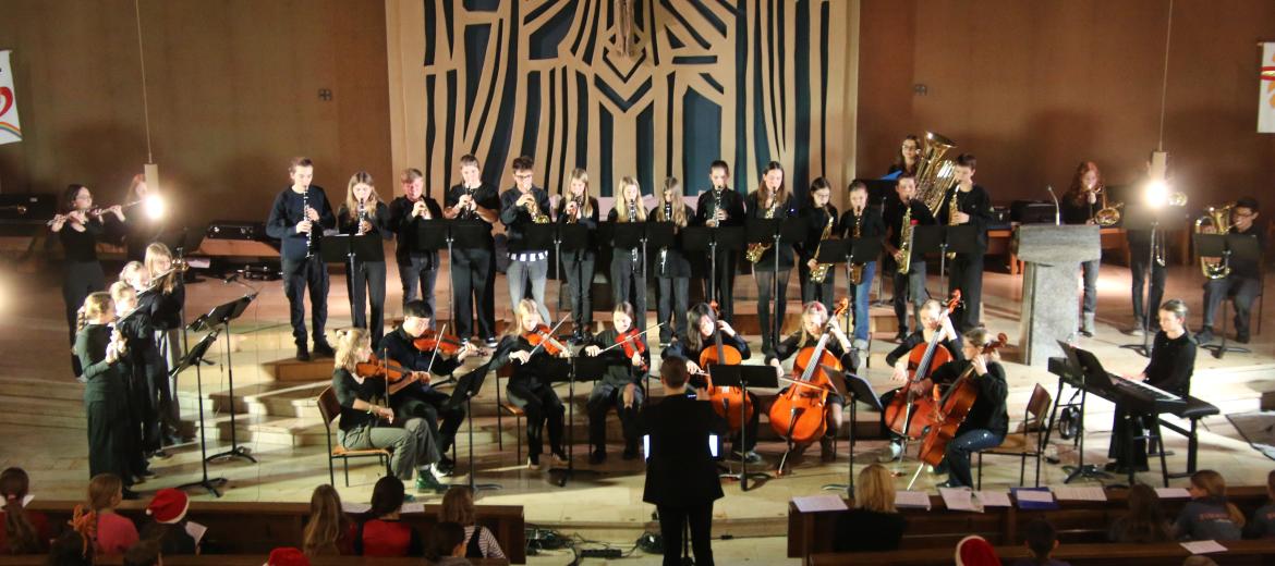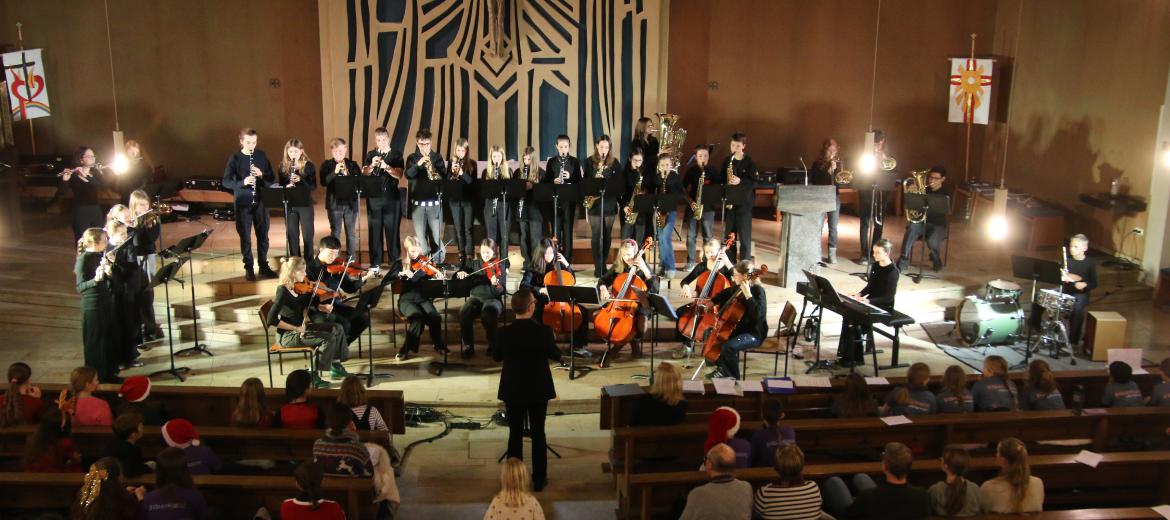 Am Freitag, 5.12.2025 fand in der katholischen Kirche in Aldingen das alljährliche Weihnachtskonzert des Lise-Meitner-Gymnasiums statt. Sehen Sie hier erste Eindrücke des gemeinsamen Konzerts der Bläserklassen, des Unterstufenchors, der VocaLise, des Kammerorchesters und des ELSE-Chors.